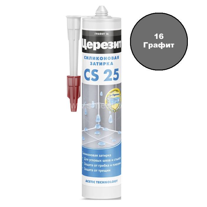 Ceresit CS 25 №13 (антрацит) - это силиконовая затирка для герметизации и соединения плиток и других поверхностей в ванных комнатах, кухнях, бассейнах и т.д.