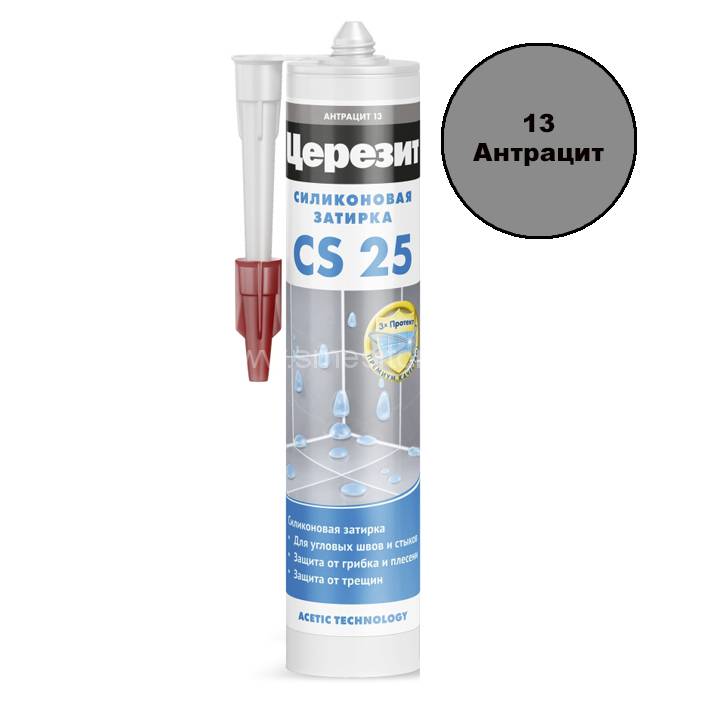 Ceresit CS 25 №13 (антрацит) - это силиконовая затирка для герметизации и соединения плиток и других поверхностей в ванных комнатах, кухнях, бассейнах и т.д.